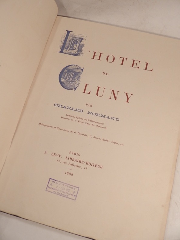 P., Hotel de Cluny, 1883, un volume in 8 relié en demi-chagrin vert, dos orné de fers dorés (reliure de l'époque), (5), 33pp., 692pp.