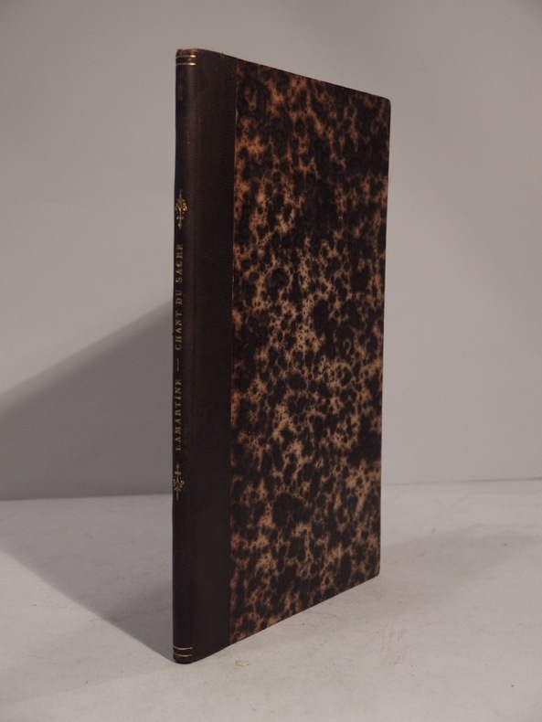 Paris, Baudouin Frères et Urbain Canel, 1825. Un volume relié (14 x 22 cm) de 64 pages et un portrait gravé de Lamartine inséré en frontispice. Reliure bradel plein papier, dos lisse, pièces de titre. Bel exemplaire, non rogné. Édition originale. Le portrait est tiré de la série "Galerie des contemprains illustrées", éditée par Hen à Bruxelles. Réalisé par Charles Louis Baugniet d'après un artiste anonyme. Charles-Louis Baugniet (1814-1886) est un peintre, lithographe et aquarelliste belge. Son nom reste attaché à la lithographie de portraits de personnages célèbres et moins connus de Belgique, de France et d'Angleterre.Ex-lbris monogrammé non identifié portant la devise Labor omnia vincit improbus.