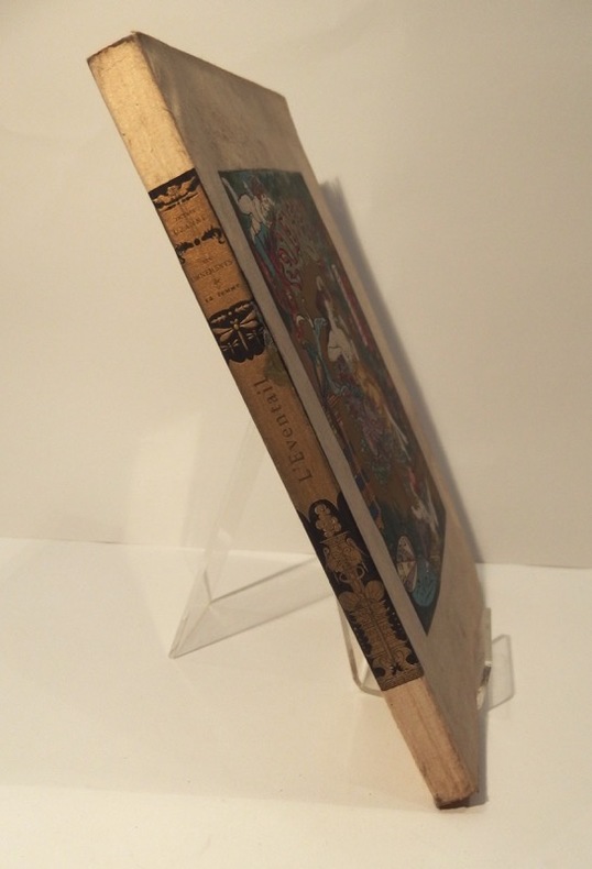 Editions originales de ces 2 ouvrages somptueusement illustrés par Paul Avril. L'éventail : Une vignette de titre bleutée, la première page dans un portique en encadrement du texte, 43 en-tête en encadrement du texte tirés en vert, rose, bleu, sépia ; culs-de-lampe, titres gravés. Texte dans un encadrement (sirènes et angelots). Page de titre en rouge et noir. L'ombrelle : Une vignette de titre, 54 illustrations en encadrement du texte, tirés en vert, rose, bleu, sépia ; culs-de-lampe et titres gravés. texte dans un encadrement. Les deux ouvrages auraient été tirés à 750 exemplaires sur vélin teinté, après le tirage de tête sur Japon. Couvertures illustrées sur japon conservées. Reliures en demi maroquin rouge à coins mosaïquées de petites feuilles vertes sur le dos. Dos à nerfs orné de roses, fleurs et feuillages. Double filet de séparation sur les plats et coins. Légères traces de frottement. Le volume de L'éventail avec rousseurs sur les couvertures. 6 feuillets dans L'ombrelle avec des brunissures. Beaux exemplaires. Très bel illustré, doué d'une certaine préciosité s'accordant au sujet, fruit d'une étroite collaboration entre l'artiste et l'écrivain. Le livre constituant une monographie intéressante sur un sujet peu étudié dans un style ironique propre à l'auteur. - Photographies et détails sur www.Edition-Originale.com -