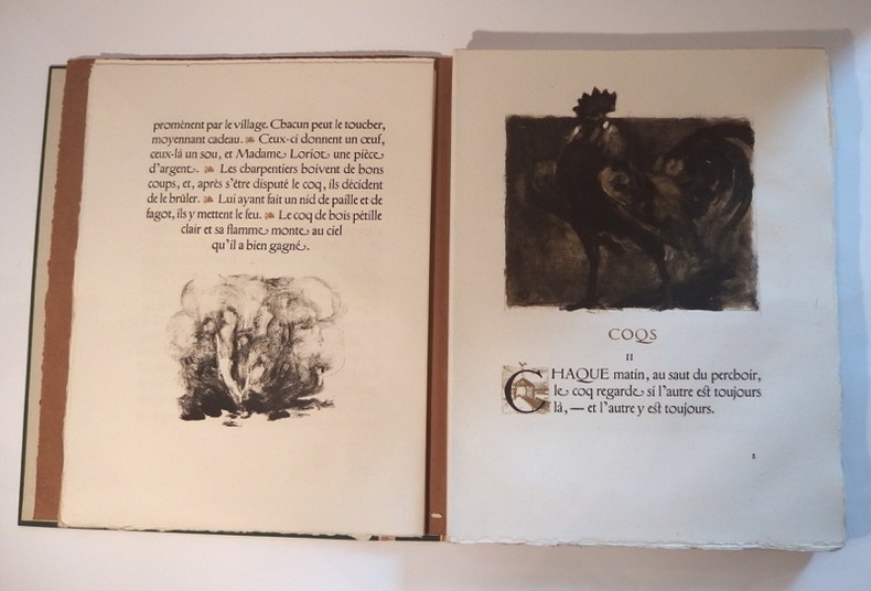 Jules Renard, Auguste Roubille (illustrateur), Histoires naturelles. Paris, M Brucker, 1928. In-8, [6]-209p. Belle édition illustrée par Roubille et tirée à 220 exemplaires, un des 160 exemplaires sur vélin d'Arches. Les lithographies sont le frontispice et des illustrations à mi-page en tête de chacune des 85 histoires. Broché, couverture rempliée Bel illustré peu commun.