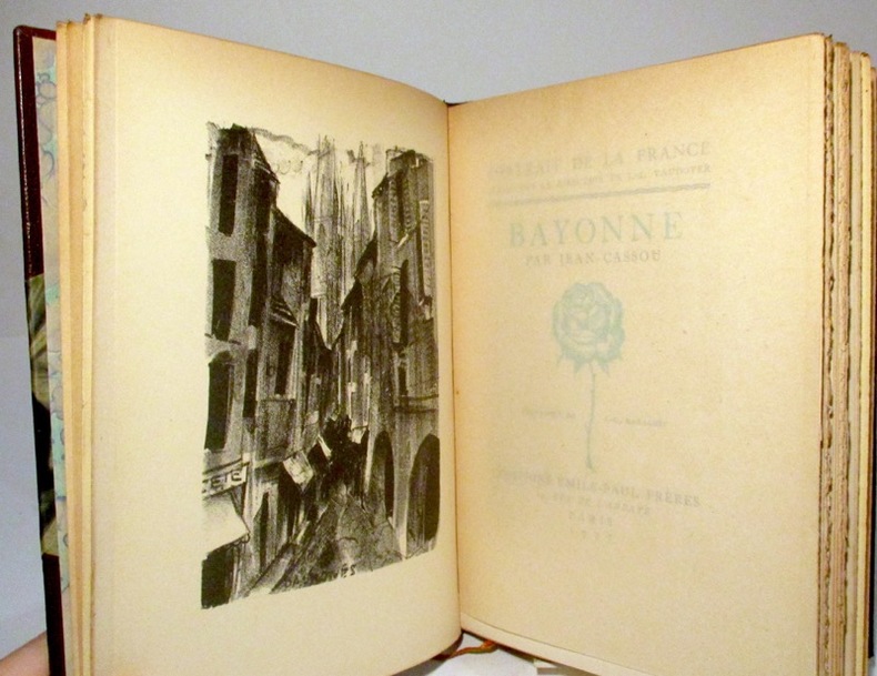 Paris, Editions Emile-Paul Frères, collection "Portrait de la France", 1927. In-8, 70 pp., demi-chargin vert à coins, étonnant papier marbré sur les plats, dos à nerfs, entre-nerfs ornés, tête dorée, partiellement non rogné, couverture et dos conservés (Dos insolé, coiffes frottées).