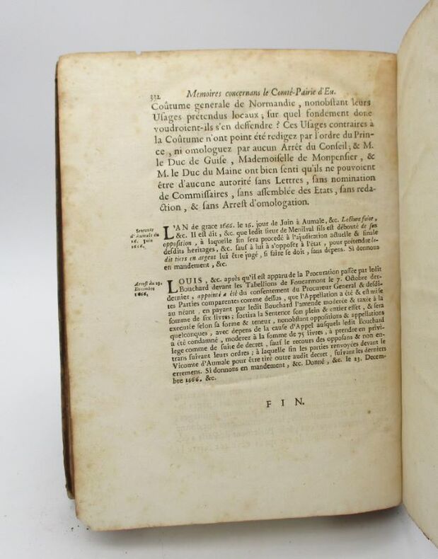 Édition originale de ce ouvrage de droit, rédigé afin de trancher la délicate question de l'appartenance du comté-pairie d'Eu à la province de Normandie. Le problème de fond est celui de la soumission au tribunal de Paris ou celui de Normandie pour les questions de justice, débat qui découla de l'ordonnance de Charles VI qui commandait de coucher sur papier les différentes coutumes des provinces composant son royaume. Cet ouvrage est l'un de ceux publiés sur le thème en faveur d'un rattachement du comté à la Normandie. Voir photographie(s) / See picture(s). * Membre du SLAM et de la LILA / ILAB Member. La librairie est ouverte du lundi au vendredi de 14h à 19h. Merci de nous prévenir avant de passer,certains de nos livres étant entreposés dans une réserve.