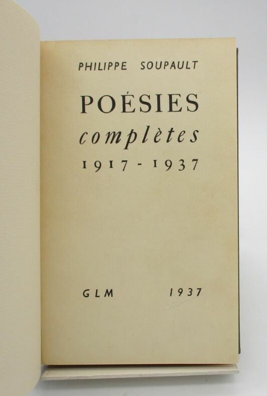 "1937. Paris Éditions GLM 1937 - Broché 12 cm x 19 cm 252 pages - Texte de Philippe Soupault - Edition originale exemplaire sur offset numéroté (n° 837) - Non coupé - Très bon état"