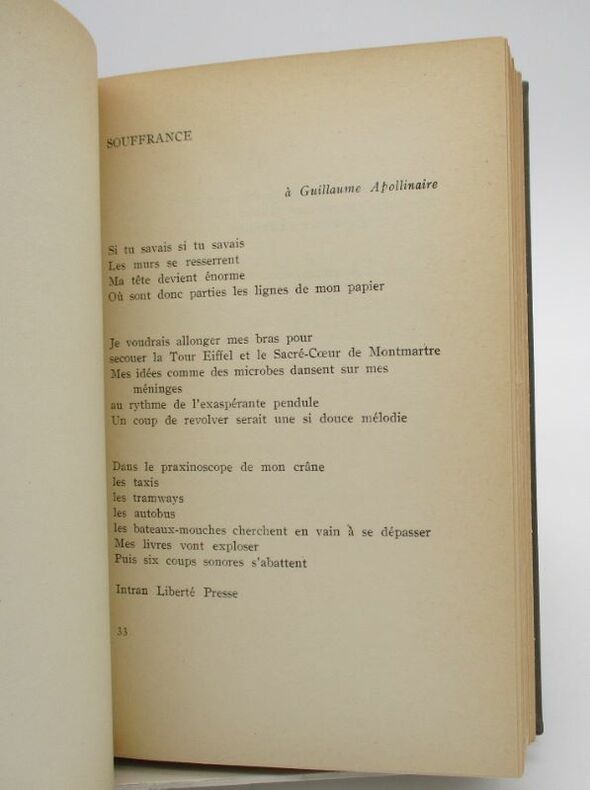 ÉDITION ORIGINALE COLLECTIVE qui réunit les recueils "Aquarium" (1917), "Rose des vents" (1920), "Westwego" (1917-1922), "Georgia" (1926), "Épitaphes", "Chansons", "Bulles billes boules" (1920-1930), "Étapes de l'enfer" (1932-1934), "Sang joie tempête" (1934-1937). Tirage limité à 1270 EXEMPLAIRES. UN des 1200 numérotés sur Offset (n°980). EXEMPLAIRE en BEL ÉTAT. FINE COPY. PICTURES AND MORE DETAILS ON REQUEST.