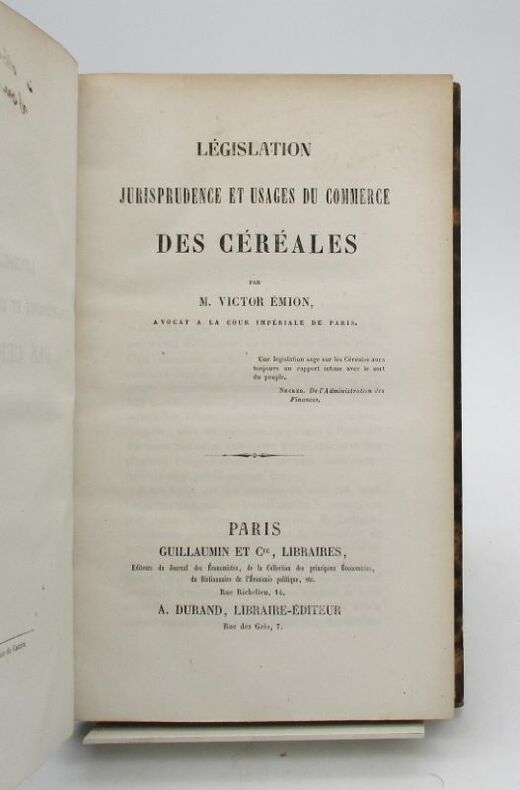 Paris, Guillaumin et Cie, s.d.[1854] In-8, 492 pp., demi-chagrun brun, dos à nerfs orné de filets à froid, auteur et titre dorés au dos (épidermures).