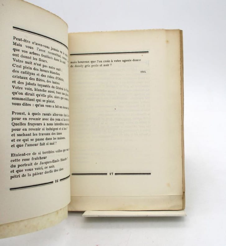 1924. Au Sans Pareil. 1924. 136 pp. In-8. Relié. Très bel exemplaire dans une élégante reliure de Bichon. 1 volume. PREMIÈRE ÉDITION EN PARTIE ORIGINALE. Celui-ci un des 800 exemplaires numé- rotés sur vélin Lafuma de Voiron. Avec les deux premiers recueils de poèmes de Morand, « Lampes à arc » et « Feuilles de température » alors épuisés, tandis que Les « Vingt-cinq poèmes sans oiseaux » paraissent ici pour la première fois.