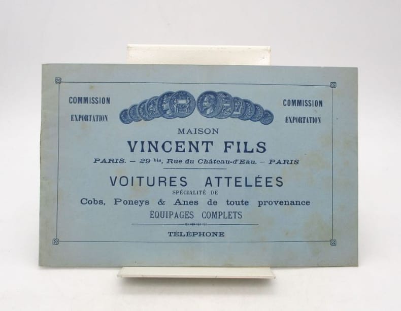 Catalogue d'équipages, selleries et accessoires pour hippomobiles illustré en bleu. * Membre du SLAM et de la LILA / ILAB Member. La librairie est ouverte du lundi au vendredi de 14h à 19h. Merci de nous prévenir avant de passer,certains de nos livres étant entreposés dans une réserve.