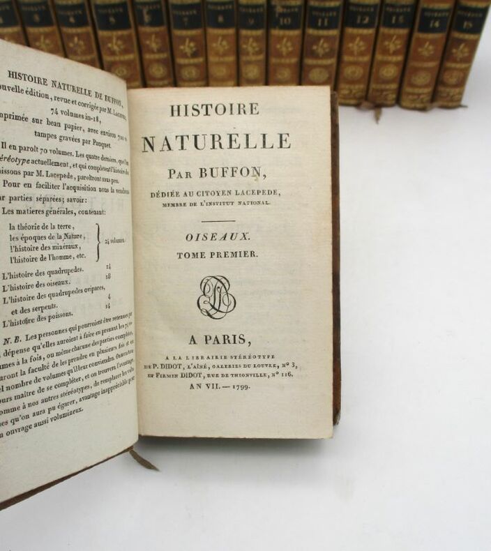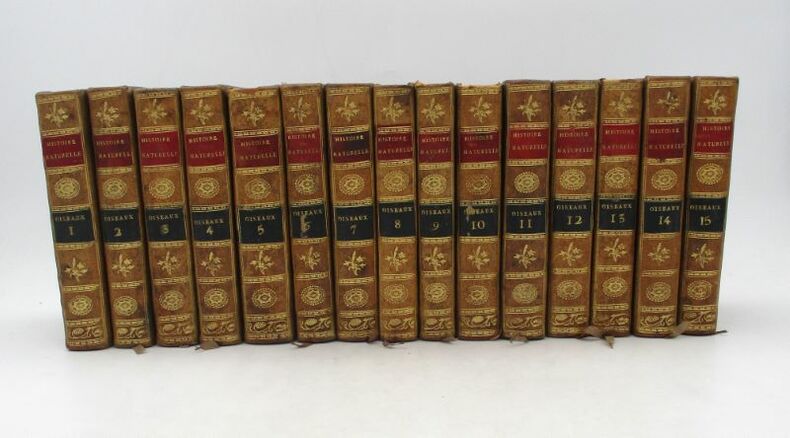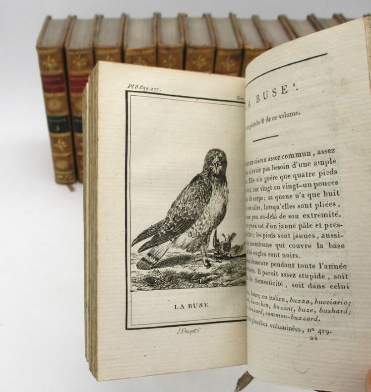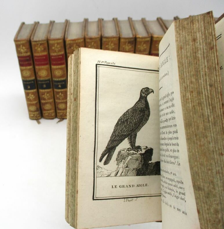 Jolie petite édition illustrée de la série des Oiseaux de l'Histoire naturelle de Buffon. Elle est illustrée de 254 planches hors texte gravées par Pauquet. Nous possédons, dans la même reliure, toutes les séries composant l'Histoire naturelle. Bon état intérieur, jolie reliure. Étiquette Ant.e Ruelle, payeur du Trésor royal. * Membre du SLAM et de la LILA / ILAB Member. La librairie est ouverte du lundi au vendredi de 14h à 19h. Merci de nous prévenir avant de passer,certains de nos livres étant entreposés dans une réserve.