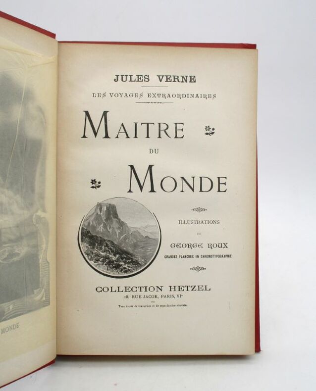 Collection les voyages extraordinaires Complet un volume, superbe reliure, tête dorée, signet, lettrines, culs-de-lampe reliure plein cuir, 21x14, ornées sur le dos de motifs dorés, très bon état, parfait état intérieur,355 pages. Jean de Bonnot, 1978 Robur le Conquérant, Maître du monde - Tome 14 Un savant génial va enlever des aérostiers pour les persuader de l’avenir de son engin révolutionnaire. Tout autour de la terre, les aventures de ces fous volants dans une drôle de machine à hélices vont démontrer le génie visionnaire de Jules Verne. Son anti-héros, Robur sorte de Némo, incompris de ses contemporains mais soutenu par son fidèle équipage, finira par disparaître dans une tempête. Dans le même volume, Maître du Monde Amer, désabusé et devenu fou, Robur réapparaît avec une nouvelle machine amphibie et volante à la fois, l’Epouvante, dont l’objet est la conquête du monde. Au-delà de la prodigieuse vision technologique, le pessimisme de Jules Verne sur la nature humaine et sur le dévoiement de l’esprit scientifique, mis aux services des folies les plus amères, ressort dans cet ouvrage mal connu et très sombre.