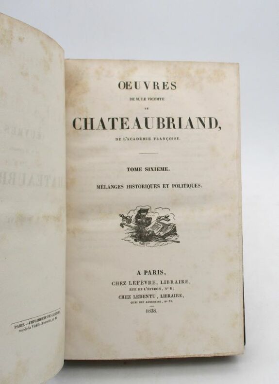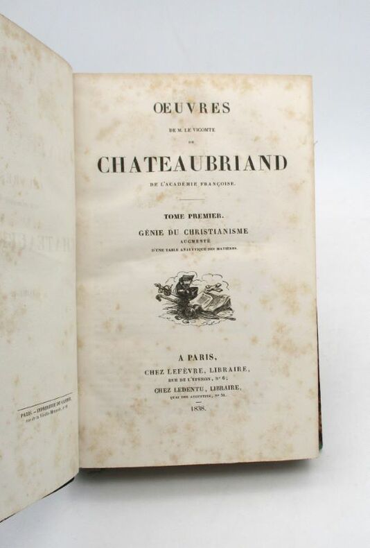 Nouvelle édition des oeuvres de Chateaubriand. * Membre du SLAM et de la LILA / ILAB Member. La librairie est ouverte du lundi au vendredi de 14h à 19h. Merci de nous prévenir avant de passer,certains de nos livres étant entreposés dans une réserve.