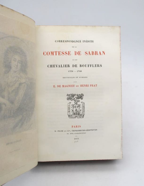 Édition originale de cette correspondance établie par Ernest de Magnieu et Henri Prat. Elle est illustrée d'un portrait de la comtesse gravée par Rajon d'après Vigée Le Brun. Vicaire, VII, 3. * Membre du SLAM et de la LILA / ILAB Member. La librairie est ouverte du lundi au vendredi de 14h à 19h. Merci de nous prévenir avant de passer,certains de nos livres étant entreposés dans une réserve.