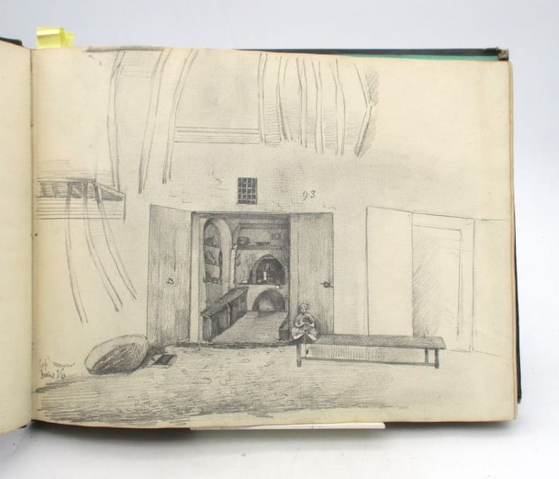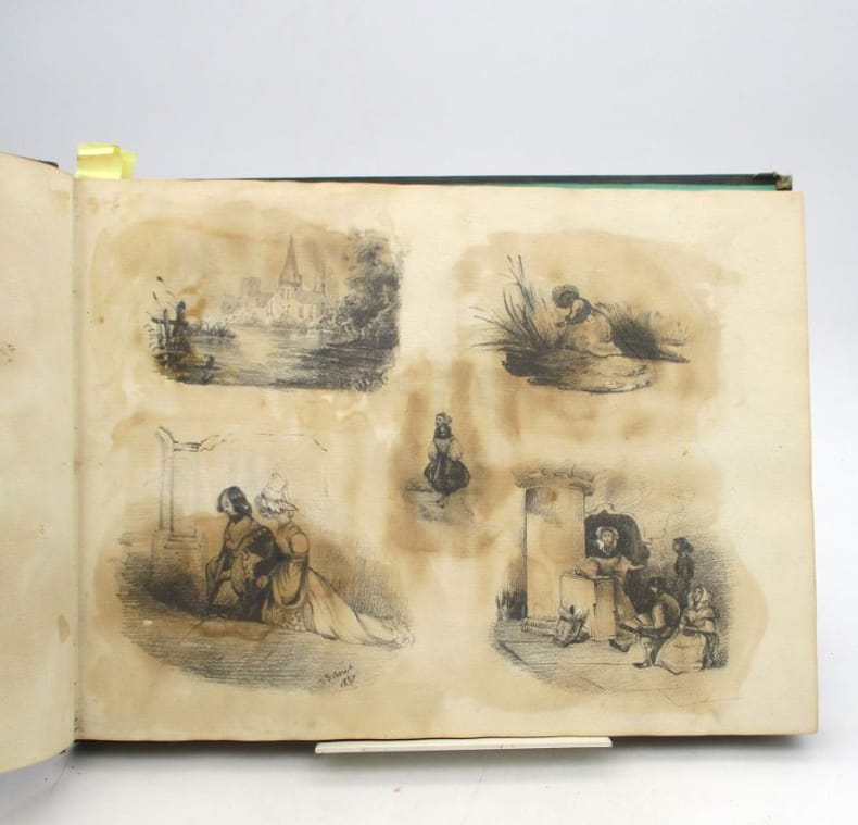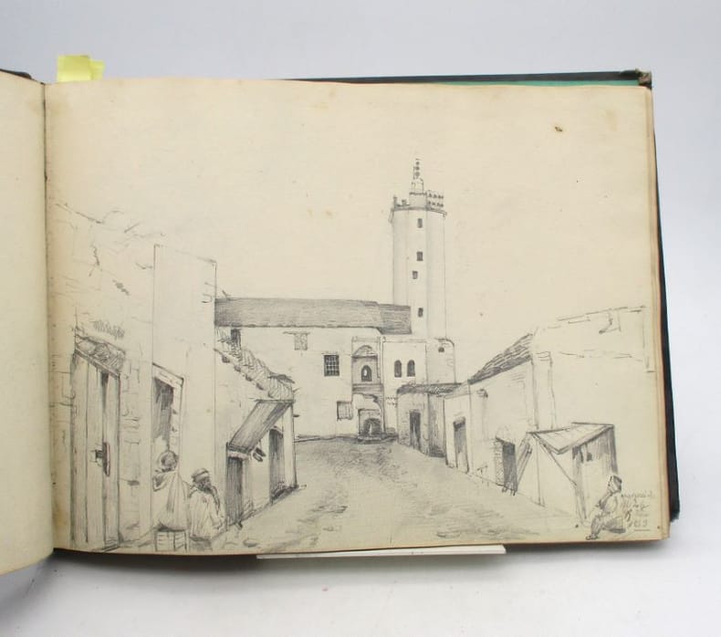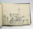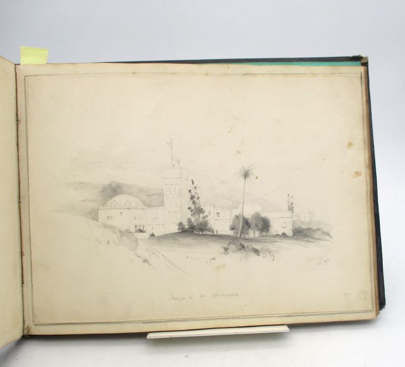Album contenant 44 dessins et croquis sur 26 planches, tous à la mine de plomb, sauf 2 à l'encre noire (dont un d'une autre main signé Huard), un rehaussé de crayon blanc. Certains sont contrecollés et il ne semble pas tous de la même main. Il représentent dans la grande majorité des portraits d'Algérie, des paysages et architectures de ce même pays ainsi que des scènes de la vie quotidienne. Certains pourraient représenter des paysages ou des constructions européennes. * Membre du SLAM et de la LILA / ILAB Member. La librairie est ouverte du lundi au vendredi de 14h à 19h. Merci de nous prévenir avant de passer,certains de nos livres étant entreposés dans une réserve.