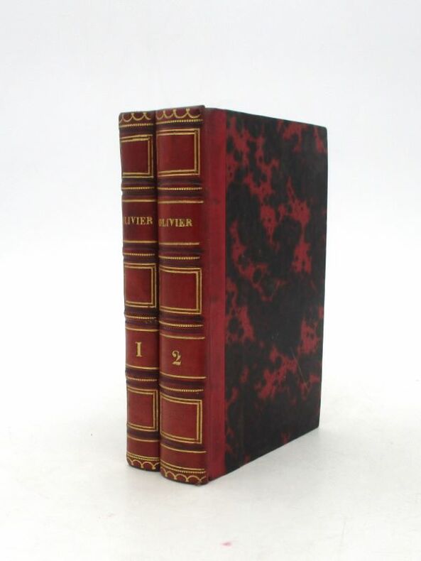(La seconde partie d'Ollivier contient Le Diable amoureux): (189)(270) pages. Demie basane bleue nuit, plats marbrés, dos avec dorures. A de rares pages: un discrète mouillure sur les dernières pages sans toucher au texte, de petites et pâles rousseurs. Livre solide, bon état compte-tenu de l'époque. [Fontaine sous Jouy, AUCUN, France] Image disp.