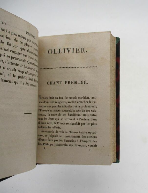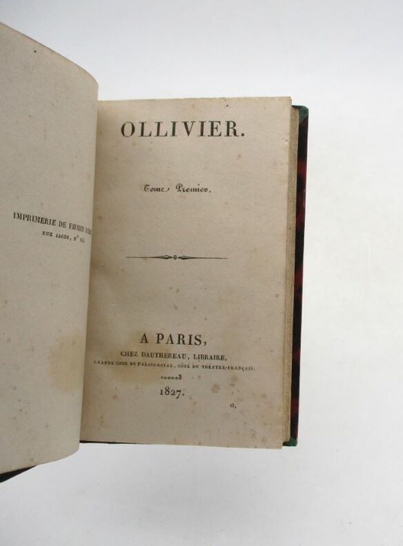 Paris, Dauthereau, 1827, in-32° (11X7cm) , XII + 189 p. + 134 p. (Ollivier. T. Second) + pages 135 à 270 p. (pour le diable amoureux), rousseurs, reliure de l’éditeur en d.-cuir, dos avec titre et filets dores, coins touchés.