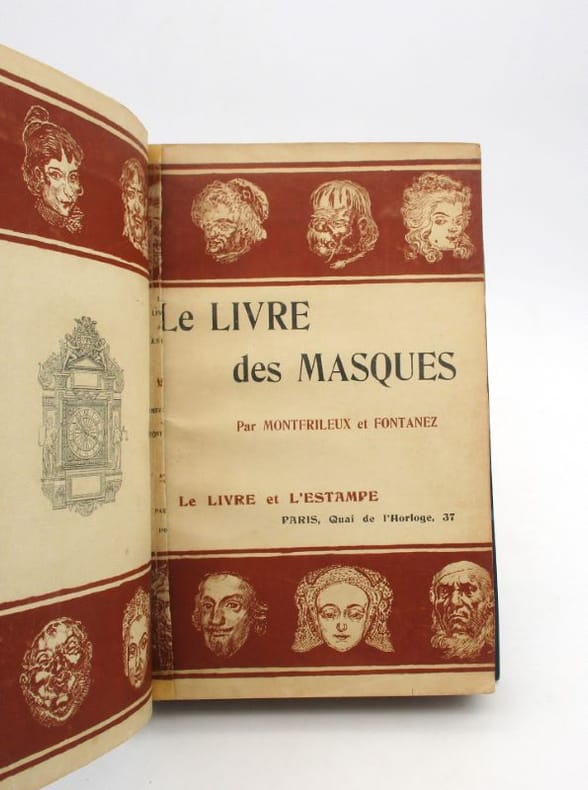 Deuxième Livre des Masques. Une analyse psychologique et littéraire de vingt-trois personnalités qui sont Francis Jammes, Paul Fort, Hugues Rebell, Félix Fénéon, Léon Bloy, Jean Lorrain, Édouard Dujardin, Maurice Barrès, Camille Mauclair, Victor Charbonnel, Alfred Vallette, Max Elskamp, Henri Mazel, Marcel Schwob, Paul Claudel, René Ghil, André Fontainas, Jehan Rictus, Henry Bataille, Éphraïm Mikhaël, Albert Aurier, Les Goncourt, [Ernest] Hello. Chaque portrait est illustré par un bois de Félix Valotton. — "Un nouveau Livre des Masques, supérieur encore an premier." (Paul Léautaud)