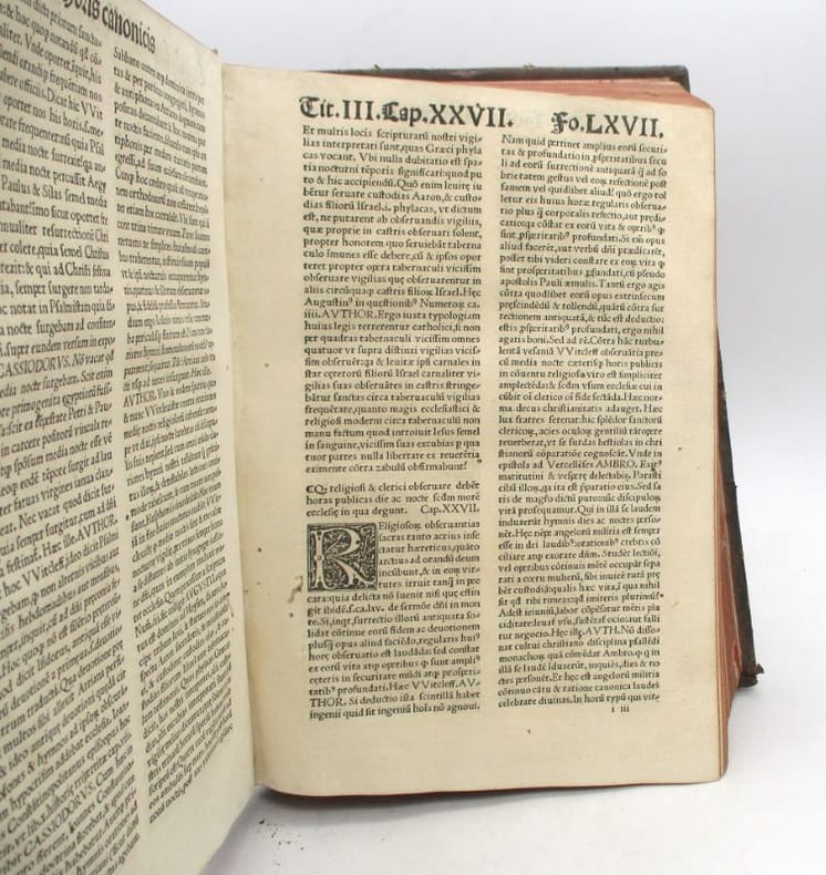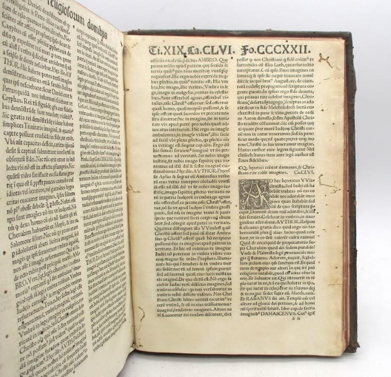 [Paris], Vaenundantur Francisco Reginaldo bibliopole academie Parisine jurato, [Josse Bade pour François Regnault, 1523]. Grand in-8, [8]- CCCXLIII ff. sign.: *8 a-z8 A-T8 V7, basane havane, dos à nerfs orné de caissons dorés, tranches rouges (reliure défraîchie mais solide, manque le dernier f. de texte, galeries de ver sans gravité pour la compréhension, restaurations du papier aux derniers ff.).