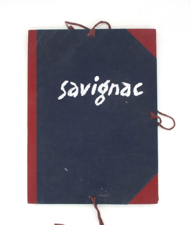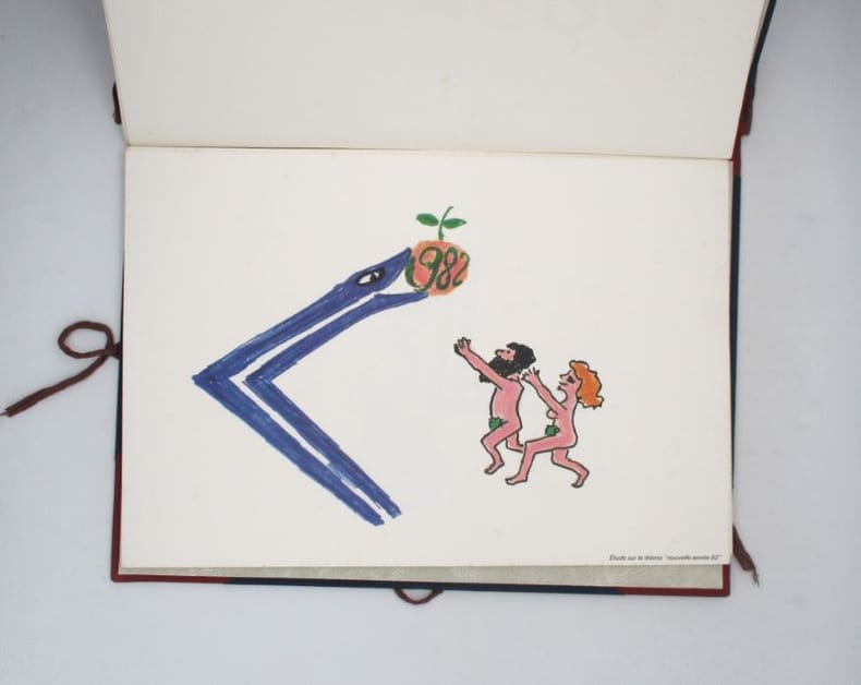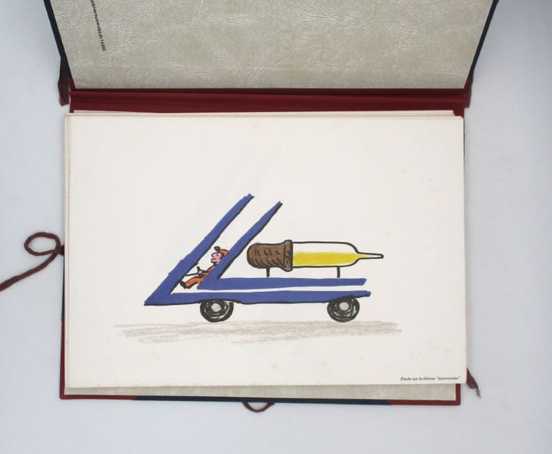 Édition originale de cet album de lithographies en couleurs de Raymond Savignac. Un des 650 exemplaires spécialement tirés pour Citroën, seul tirage annoncé. Les planches sont divisées en plusieurs catégories: Étude sur le thème "économies" (7 pl.); Étude sur le thème "anti-stop" (4 pl.); Étude sur le thème "nouvelle année 82" (6 pl.); Étude sur le thème "utilitaires" (2 pl.); Étude sur le thème "courez chez Citroën" (2 pl.); Étude sur le thème "travail de nuit" (1 pl.); Étude sur le thème "en avant Citroën" (3 pl.); Étude sur le thème "confort hydropneumatique" (3 pl.); Étude sur le thème "aérodynamisme" (2 pl.). Belles couleurs bien fraîches. * Membre du SLAM et de la LILA / ILAB Member. La librairie est ouverte du lundi au vendredi de 14h à 19h. Merci de nous prévenir avant de passer,certains de nos livres étant entreposés dans une réserve.