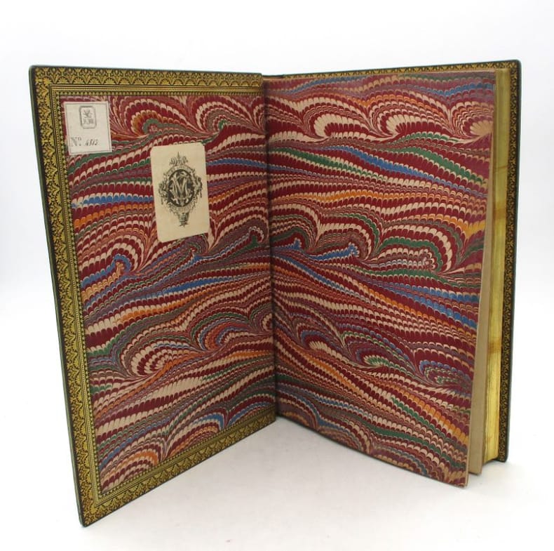 A Paris, chez la Veuve de Sébastien Mabre-Cramoisy, 1688. 2 forts vol. au format in-4 (261 x 192 mm) de 1 f. bl., 20 ff. n.fol., 506 pp., 17 ff. n.fol. et 1 f. bl. ; 1 f. bl., 4 ff. n.fol., 680 pp., 20 ff. n.fol. et 2 ff. bl. Reliures uniformes de l'époque de plein veau marbré havane, triple filet à froid encadrant les plats, dos à nerfs richement ornés de filets gras à froid, filets dentelés dorés, filets verticaux dorés, caissons d'encadrement dorés, large décor fleuronné doré, semis d'étoiles et de pointillés dorés, pièces de titre et de tomaison de maroquin brun, titre doré, tomaison dorée, large palette dorée en tête et queue, dentelle dorée sur les coupes, tranches jaspées, dentelle intérieure dorée.