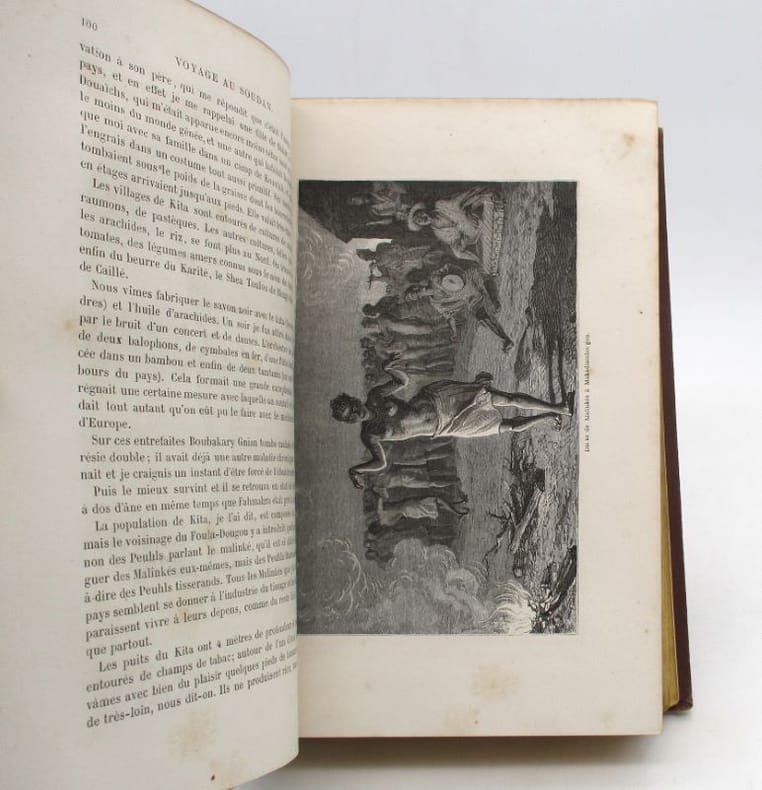 Edition originale (Gay 2783 - Chadenat 3287). Voyage entreprit pour ouvrir une voie de communication vers l'intérieur de l'Afrique par le Haut-Sénégal. Résultats des études géographiques, ethnographiques et philosophiques. Ouvrage orné de nombreuses illustrations in et hors texte d'après les dessins de l'auteur et de deux plans, de 4 cartes doubles et de deux grandes cartes repliées. Rousseurs.