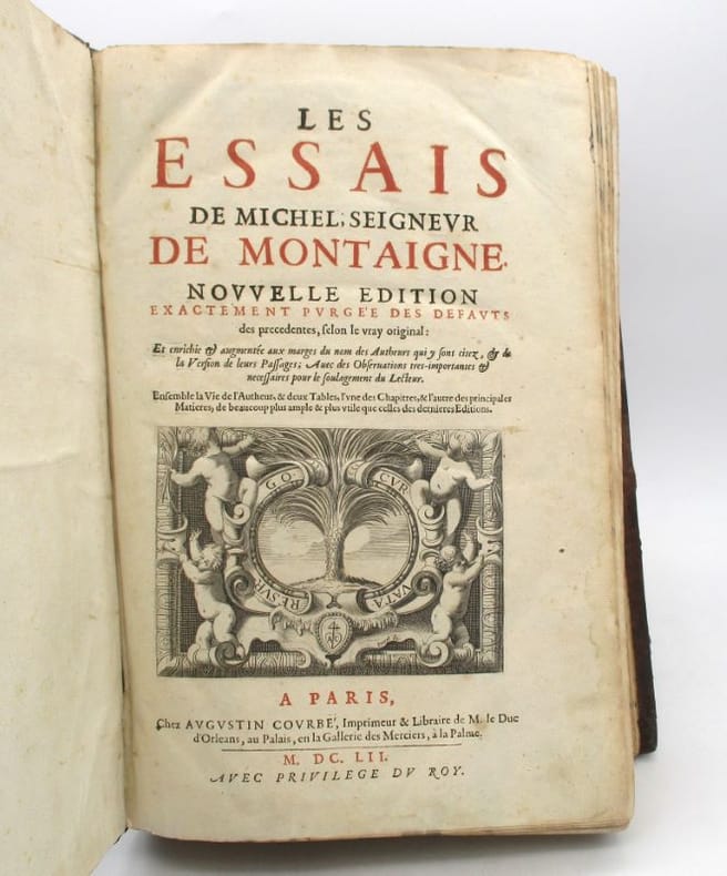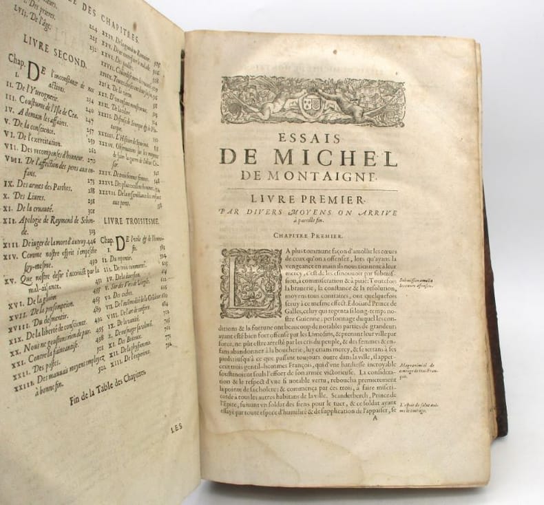 (Les Essais de Montaigne en reliure strictement de l'époque. L'exemplaire d'un membre de la famille De Calonne)