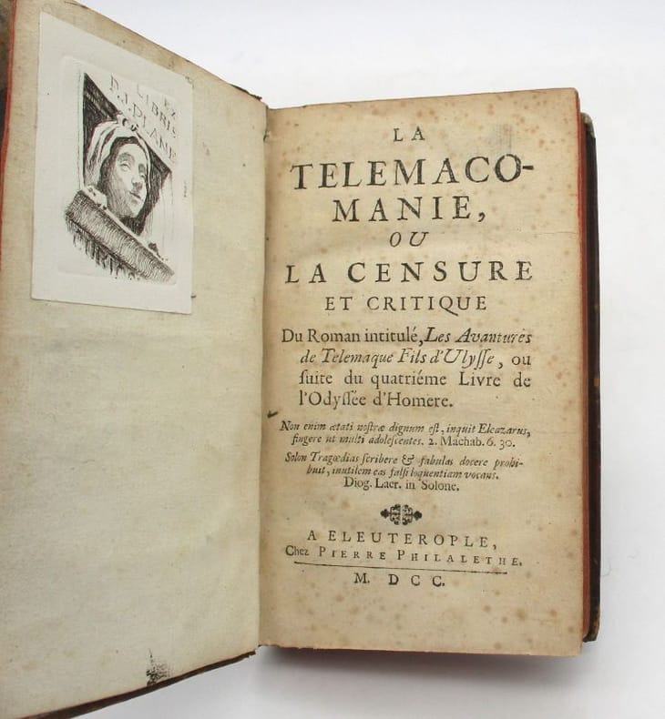 First edition of this extensive critique of Fenelon's novel ""Telemaque"" from 1699.