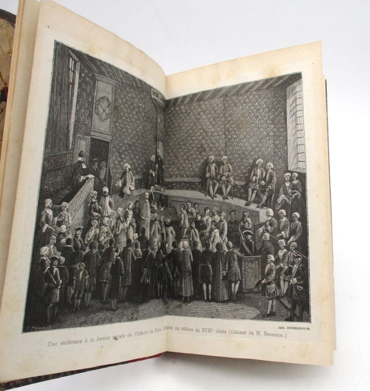 Histoire de France au Moyen-Age Volume I. P.J.B Buchez, histoire de la formation de la Nationalité Française, Tome 1. De l'état social des Gaulois et des Francs à la fin du IVe siècle. Histoire des Gaules dans le Ve siècle de 160 à 180. Formation de la Nation française. La France sous les Rois - Époque Mérovingienne de 511 à 638. Tome 2. Les Carlovingiens. La France sous le Gouvernement des Maîtres du Palais. Fin de la période mérovingienne de 638 à 752. La France sous les Carlovingiens première période de 752 à 840. Séparation de la France et de l'Empire. Naissance de la Féodalité. Période Carlovingienne de 840 à 879. Établissement du système féodal. Fin de la dynastie carlovingienne de 879 à 987. Complet Tome I et II et dernier, 184, 191pp. relié à la suite; l'affranchissement des Communes, les luttes du Tiers état contre la Royauté et l'aristocratie féodale au moyen-age.190pp. Volume II. Jules Bastide; luttes religieuses des premiers siècles, 191pp, + les guerres de la réforme, 190pp, relié à la suite; Eugène Pelletan; décadence de la Monarchie Française, 190pp. deux volumes in-12, 15x10, reliés demi cuir, en très bon état intérieur. Paris, Dubuisson, vers 1860 ref/266