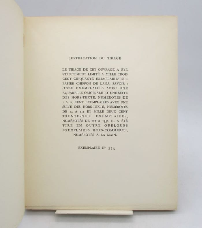 Paris Hazan, Paris 1954; In-4 , pleine reliure janséniste en maroquin havane, couvertures et dos conservés. Tirage à 1350 exemplaires, celui-ci un des 1239 numérotés sur papier chiffon de Lana. des 1350 exemplaires numérotés sur papier chiffon de Lana. 10 planches hors-texte en couleurs et quelques dessins.