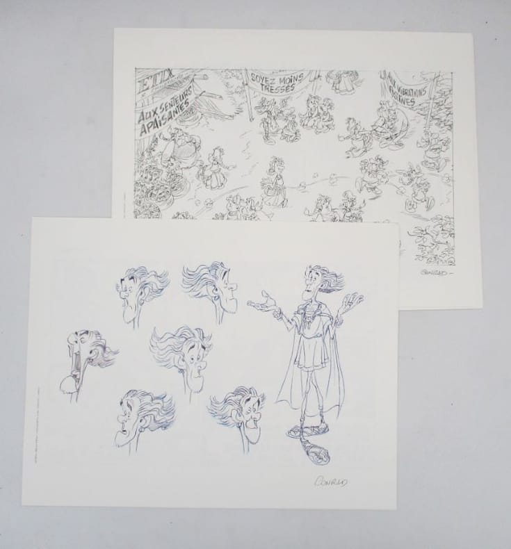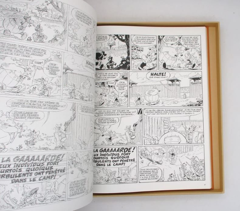 Édition originale de cet ouvrage relatif au quarantième et dernier album des aventures d'Astérix et Obélix. Un des 130 exemplaires hors commerce. Il comprend les planches crayonnées avec, en regard, les planches encrées, un cahier de recherches graphiques et 5 ex-libris. * Membre du SLAM et de la LILA / ILAB Member. La librairie est ouverte du lundi au vendredi de 14h à 19h. Merci de nous prévenir avant de passer,certains de nos livres étant entreposés dans une réserve.