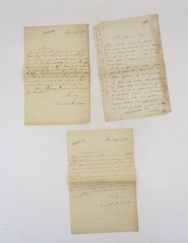 Édition originale de ce recueil d'anecdotes sur la famille régnante de France. Cet exemplaire contient également deux lettres autographes signées de l'auteur à un éditeur, la première est datée du 18 juin 1914 (1 p. in-8), la deuxième du 21 novembre suivant : toutes deux évoquent une publication relative à l'Alsace et la Lorraine. La deuxième évoque également la Première Guerre mondiale, débutée quelques moins plus tôt. Il contient une troisième lettre d'une main inconnue et semblant être adressée à un éditeur ou un imprimeur. * Membre du SLAM et de la LILA / ILAB Member. La librairie est ouverte du lundi au vendredi de 14h à 19h. Merci de nous prévenir avant de passer,certains de nos livres étant entreposés dans une réserve.