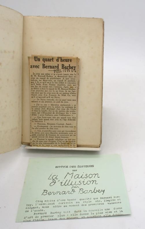 Édition originale de ce recueil de cinq récits. Cet exemplaire est enrichi d'un envoi autographe signé de l'auteur à son éditeur P.-V. Stock. On joint la notice des éditeurs du présent ouvrage et un article sur l'auteur. Exemplaire non coupé. * Membre du SLAM et de la LILA / ILAB Member. La librairie est ouverte du lundi au vendredi de 14h à 19h. Merci de nous prévenir avant de passer,certains de nos livres étant entreposés dans une réserve.