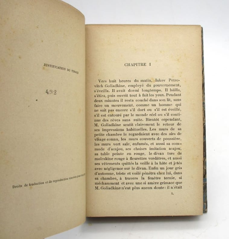Édition originale de la traduction par J.-W. Bienstock et Léon Werth. Cet exemplaire numéroté comporte un envoi autographe signé de Bienstock à l'éditeur Pierre-Victor Stock. On joint quatre articles de presse relatifs à Dostoïevski. * Membre du SLAM et de la LILA / ILAB Member. La librairie est ouverte du lundi au vendredi de 14h à 19h. Merci de nous prévenir avant de passer,certains de nos livres étant entreposés dans une réserve.