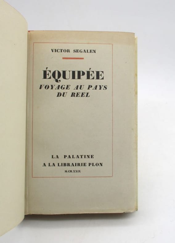 EDITION ORIIGINALE. Préface de Jean Lartigue. Un des 30 exemplaires numéroté sur papier des manufactures impériales du JAPON. Couverture un peu marquée mais bon exemplaire non rogné et en grande partie non coupé.>>>>>C'est durant son expédition archéologique de 1914 que Segalen eut l'idée de ce livre, qu'il nourrit de ses notes de voyage mais également de ses impressions sur ses diverses expériences, « dix années d'imaginaire à couler sans tarder dans la matrice du réel ». Il fut rédigé lors de son retour en France entre le 9 septembre 1914 et le 6 février 1915, comme il le précise sur le manuscrit, à bord du Paul Lecat. L'écrivain reprend son texte en novembre 1916, avant de repartir en Chine début 1917, abandonnant son manuscrit sans jamais le reprendre. C'est Jean Lartigue, ami intime de l'écrivain, et son compagnon avec Gilbert de Voisin lors des grandes missions archéologiques chinoises en 1909 et 1914, qui en établira l'édition. Bon exemplaire 0