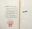 Paris, La Palatine, Librairie Plon, 1929. In-8, broché. Faux-titre, titre, 1 f non chiffré, X, 241 pp. Edition originale posthume, tirage limité numéroté à 2715 exemplaires, celui-ci étant un des 2400 sur alfa portant le numéro 57. Exemplaire non coupé. Dos et plat un peu jaunis, sinon très bon état.