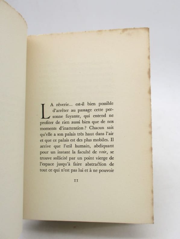 Grasset, éditeur. 1954. In-8° broché. Couverture rempliée. 139 pages. E.O. 1/1.300 sur vélin de Lana. [1 chine / 18 japon impérial / 43 vergé de Montval / 1.300 vélin de Lana]. // Ce recueil comprend quatre textes : " Alouette du parloir ", d'André Breton, " Le Vrai jour " de Lise Deharme, " Les Yeux bien ouverts " de Julien Gracq et " Madrépores ou l'Architecte imaginaire " de Jean Tardieu. Les trois premiers textes furent écrits pour un programme radiophonique organisé par Lise Deharme ; le dernier fut écrit à sa demande pour ce livre.