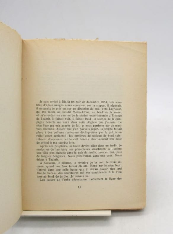 Edition définitive et sur papier courant de cet ouvrage publié sous le pseudonyme d'Abdallah Chaamba, mention service de presse imprimée en pied du second plat. Quelques piqûres en marge du premier plat. Très rare envoi autographe signé de François Augiéras à Luc Estang. - Photographies et détails sur www.Edition-Originale.com -