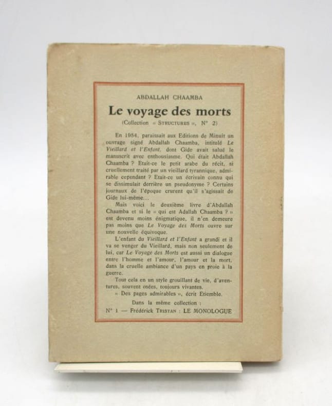 ed. La Nef de Paris 1959 sous le pseudonyme d’Abdallah CHAAMBA, , , , in-12 br., coll. «Structure», où l’on retrouve Le Veillard et l’Enfant (qui a grandi), 1er mille, dos tres tres legerement jauni, petites taches discretes sur la couv., non coupe