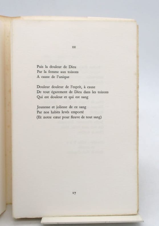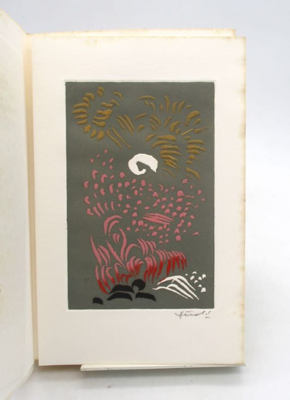 Édition originale illustrée de 3 eaux-fortes en couleurs signées par Hérold et de la reproduction d'une calligraphie en couverture. Un des quelques exemplaires hors commerce, tirage non décrit. * Membre du SLAM et de la LILA / ILAB Member. La librairie est ouverte du lundi au vendredi de 14h à 19h. Merci de nous prévenir avant de passer,certains de nos livres étant entreposés dans une réserve.