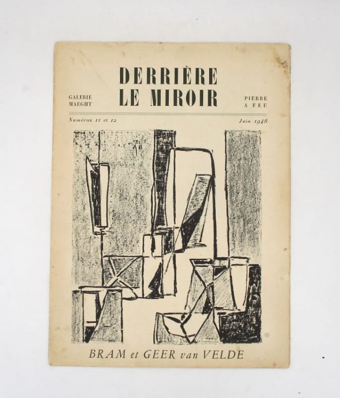 Paris, Maeght éditeur, 1948. In-folio (380 x 280 mm) en feuilles, 8 pages. 2 lithographies originales en noir de Geer van Velde. 16 reproductions en noir et blanc de Geer van Velde et Bram van Velde. Textes de Samuel Beckett "Peintres de l'empêchement" et de Jacques Kober. Propos de Bram van Veldes " Paroles". Exposition de 21 peintures récentes des artistes.