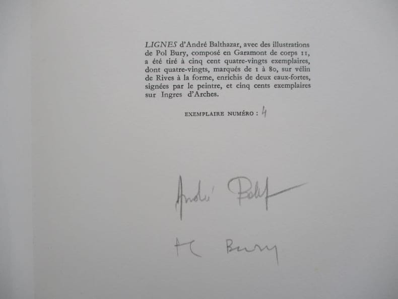 Édition originale illustrée de deux eaux-fortes signées par l'artiste et de reproductions en noir. Un des 80 exemplaires tirés sur vélin à la forme, tirage de tête, signé à la justification par l'auteur et l'artiste. * Membre du SLAM et de la LILA / ILAB Member. La librairie est ouverte du lundi au vendredi de 14h à 19h. Merci de nous prévenir avant de passer,certains de nos livres étant entreposés dans une réserve.
