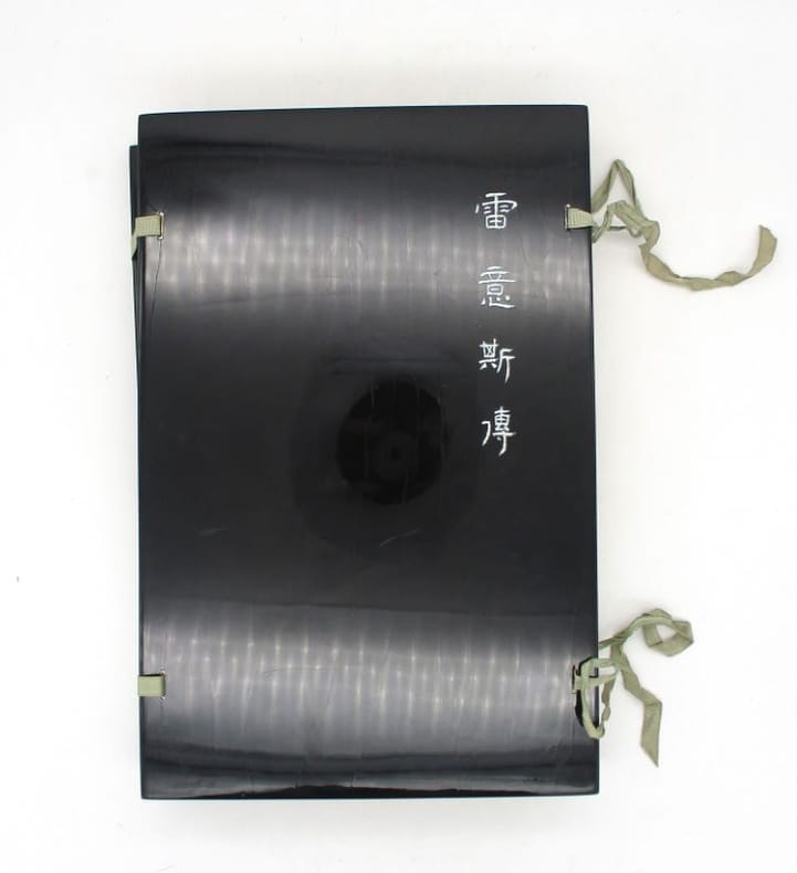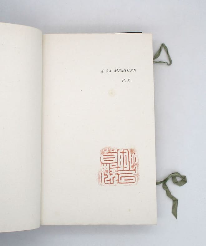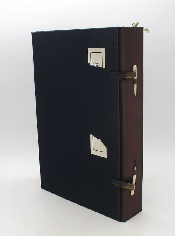 Paris, Les Cent une, 1952. 2 vol. in-folio étroits, 96 pp. + 99-184 pp., broché à la chinoise, couverture originale en soie, deux plaques de laque noire retenues par deux liens verts, emboîtage de l'éditeur de soie (étiquette de l'emboîtage déchirée, emboîtage frotté et insolé, rares rousseurs éparses).