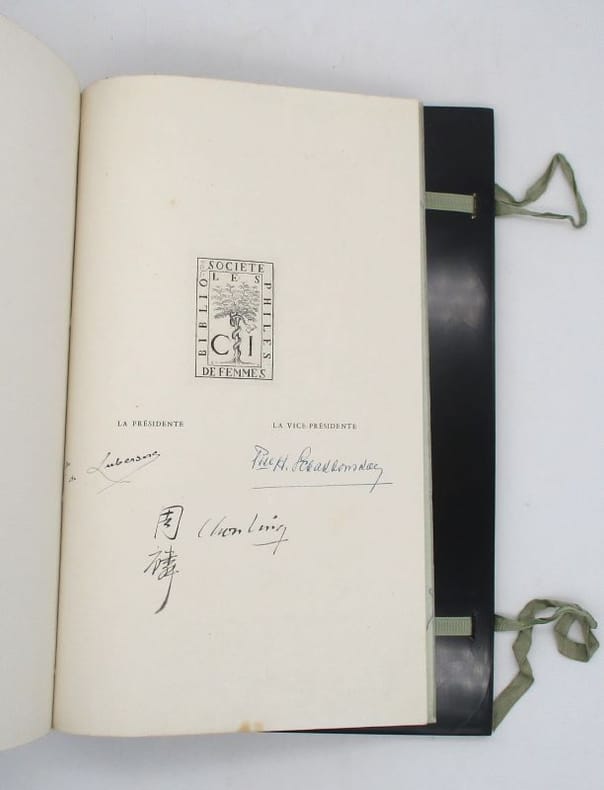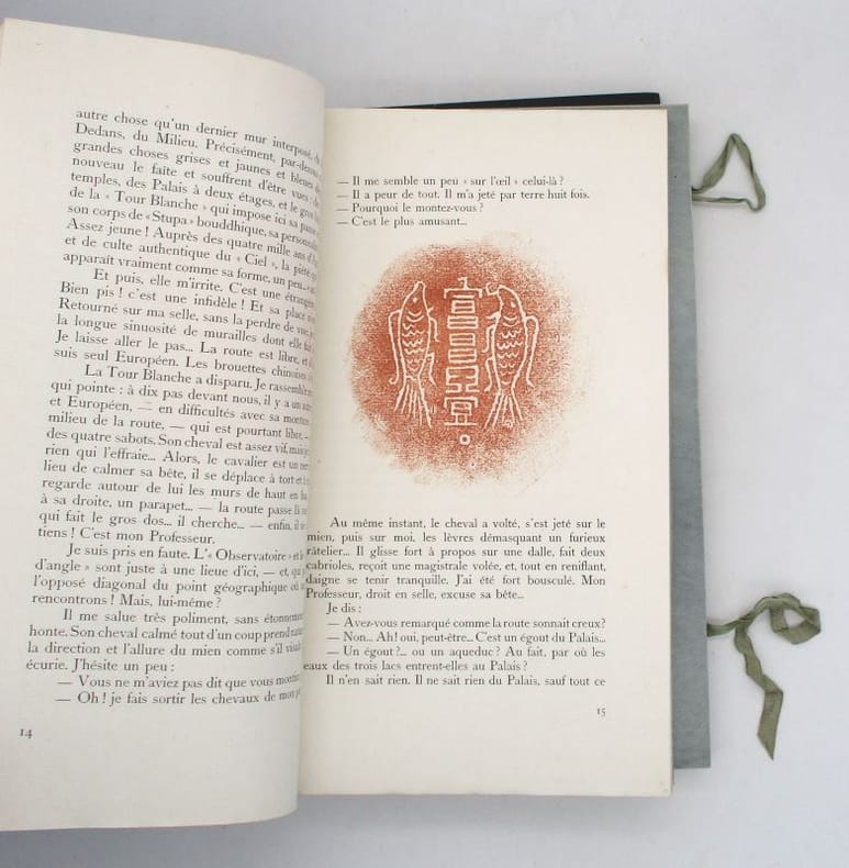 Édition illustrée des 38 gravures sur cuivre en bistre de Chou Ling. Un des 150 exemplaires tirés sur papier de Chine double Yu-Pan, signé à la justification par l'artiste, la présidente et la vice-présidente de la société des femmes bibliophiles Les Cent une. * Membre du SLAM et de la LILA / ILAB Member. La librairie est ouverte du lundi au vendredi de 14h à 19h. Merci de nous prévenir avant de passer,certains de nos livres étant entreposés dans une réserve.