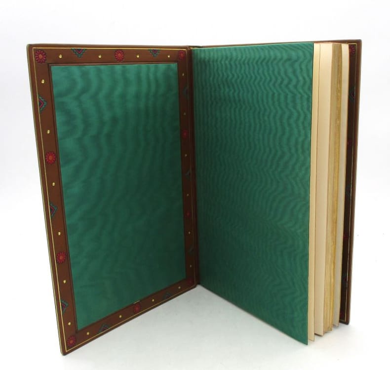 Paris, A. Ferroud, 1901. In-4, 121 pp., basane brune de Gruel mosaïquée de motifs orientaux et points dorés, dos long orné de même, encadrement intérieur orné de même, doublure et garde de soie moirée verte, tranches dorées, couverture conservée, étui (petits frottements).