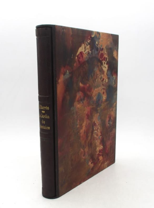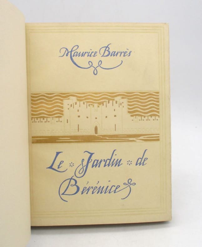 Maurice Barrès, né le 17 août 1862 à Charmes et mort le 4 décembre 1923 à Neuilly-sur-Seine, est un écrivain et homme politique français, figure de proue du nationalisme français. Le Jardin de Bérénice raconte l’histoire d’un jeune intellectuel, Philippe, qui vient d’adhérer au programme du général Boulanger – on est en 1889 – et qui part plein d’enthousiasme pour la Provence organiser une campagne électorale. C’est là qu’il retrouve Bérénice, une ancienne connaissance, qui vit maintenant seule dans une grande maison dans la ville d’Aigues-Mortes. À travers elle, qu’il ne cesse de contempler « si belle dans son jardin », il a le sentiment de découvrir pour la première fois l’harmonie de la vie et pense trouver, dans le cadre de ce jardin et grâce à l’amour de cette femme, la signification secrète de l’univers. Mais Bérénice épouse un autre homme, l’adversaire politique de Philippe, et meurt peu de temps après. Dès lors, son souvenir illumine la vie du jeune homme et le pousse à défendre son idéal : l’engagement politique. Vol relié demi toile, frottements, 19x13, très bel état intérieur, 296pp. Couvertures d'origines conservées Paris, Perrin, 1891 ref/276