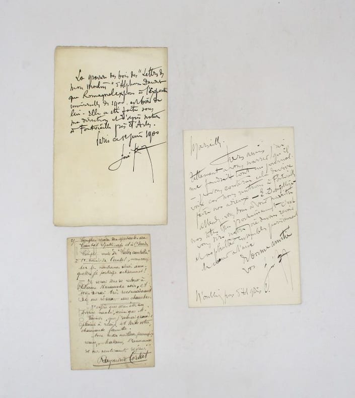 Édition illustrée des compositions en noir de Roy et Fraipont. Cet exemplaire comporte deux lettres autographes signées de José Roy. La première, sans date, (1 p. in-12) évoque un retour de vacances et la seconde, datée du 12 juin 1900 (1p. in-12) évoque l'une de ses gravures pour la présente publication qui fut présentée par l'éditeur à l'Exposition universelle de 1900. * Membre du SLAM et de la LILA / ILAB Member. La librairie est ouverte du lundi au vendredi de 14h à 19h. Merci de nous prévenir avant de passer,certains de nos livres étant entreposés dans une réserve.
