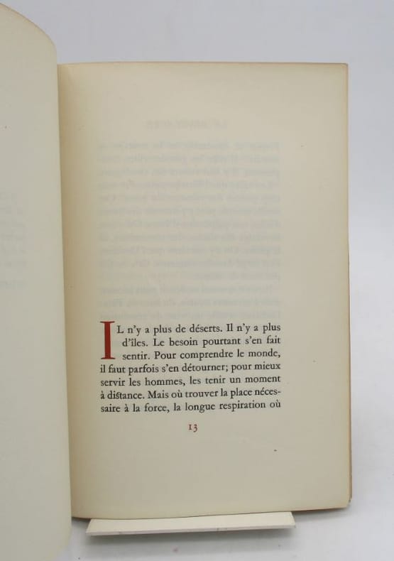 Editions Charlot 1950. In-8 broché de 80 pages au format 25 x 16,5 cm. Couverture rempliée avec titre imprimé en rouge et noir. Dos carré. Plats et intérieur parfaits. Exemplaire non coupé. Un des 800 exemplaires numérotés sur vélin pur fil des papeteries de Rives ( n° 649 ), après 15 sur papier de Chine, 50 sur vélin de Hollande Van Gelder et 280 sur vélin pur fil des papeteries de Lana. Rare édition originale, surtout dans un tel état de fraicheur, proche du neuf.