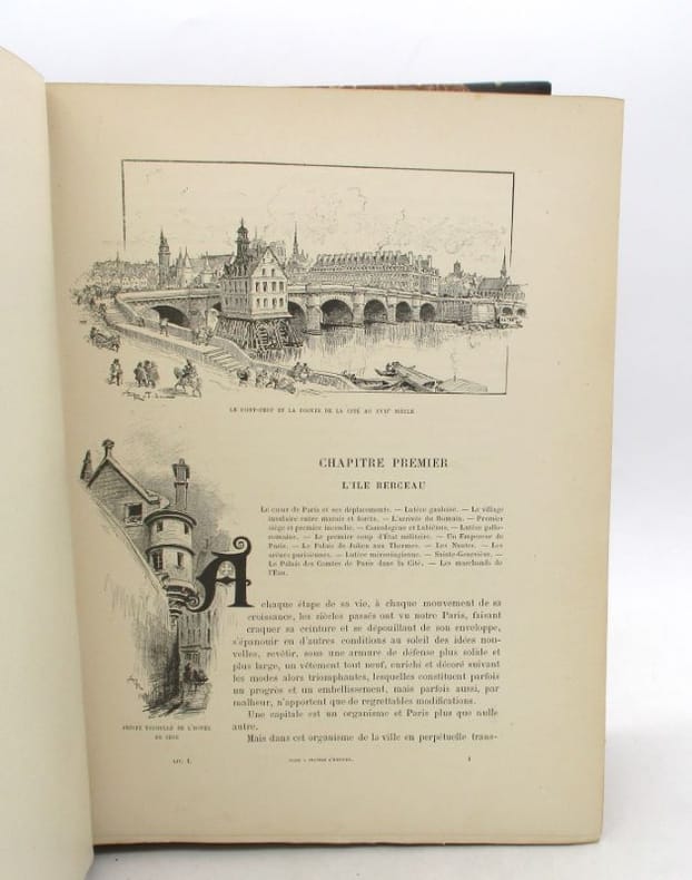 RobidaParis de Siècle en siècle, Lithographies couleursParis, A librairie illustrée, broché, 23 x 31 cm., couverture et dos illustré, (dos fendu), non rogné, petit manque en couverture. Frontispice gravé à l'eau-forte, 412 pp. Ouvrage illustré par Albert Robida de 250 dessins, 24 lithographies hors-texte, dont 7 en couleurs, intérieur bien conservé, sans rousseurs, mériterait une belle reliure.L'Île Berceau - La croissance - Trois grandes abbayes de la rive gauche - Le Paris des Eglises et des couvents - Les commanderies - A travers la ville Escholière - Paris féodal - Paris Bourgeois et populaire - La place Royale et le Marais - Le Paris de Louis XIV et de Louis XV - L'enfantement du monde moderne