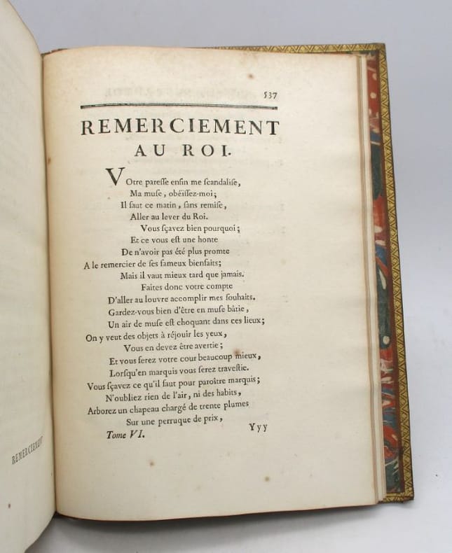 Très belle édition illustrée d'un portrait de l'auteur gravé par Lépicié d'après Ch. Coypel en frontispice, de 33 planches hors-texte de François Boucher gravées par Laurent Cars, de 198 vignettes et culs-de-lampe (certains répétés) gravés par Joullain et Cars d'après Boucher, Blondel et Oppenord ainsi que de jolies lettrines. Ex-libris héraldique de l'évêque d'Autin Yves Alexandre Demarbeuf. Cohen, 712 : "Le chef-d'oeuvre de Boucher, comme illustration; c'est l'un des plus beaux livres de la première partie du XVIIIe siècle." * Membre du SLAM et de la LILA / ILAB Member. La librairie est ouverte du lundi au vendredi de 14h à 19h. Merci de nous prévenir avant de passer,certains de nos livres étant entreposés dans une réserve.