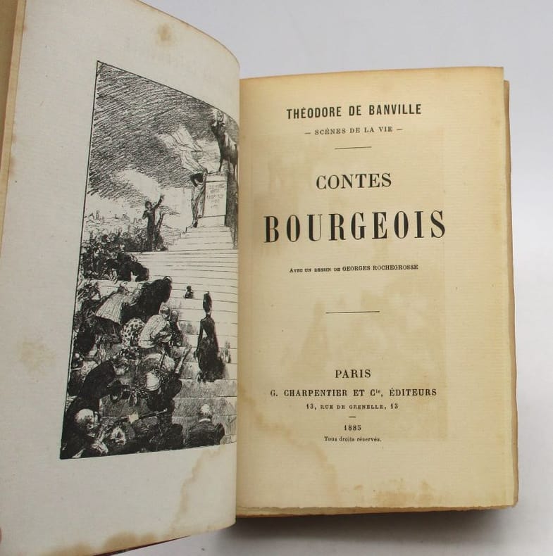 1885 Paris Charpentier 1885 in12, demi chagrin bleu nuit, dos à nerfs, tranches supérieures dorée, frontispice de Rochegrosse 364 pp édition originale Bel exemplaire malgré qqs rousseurs bien relié