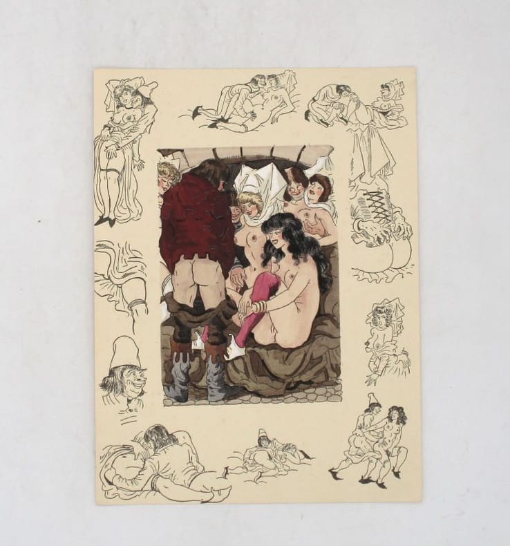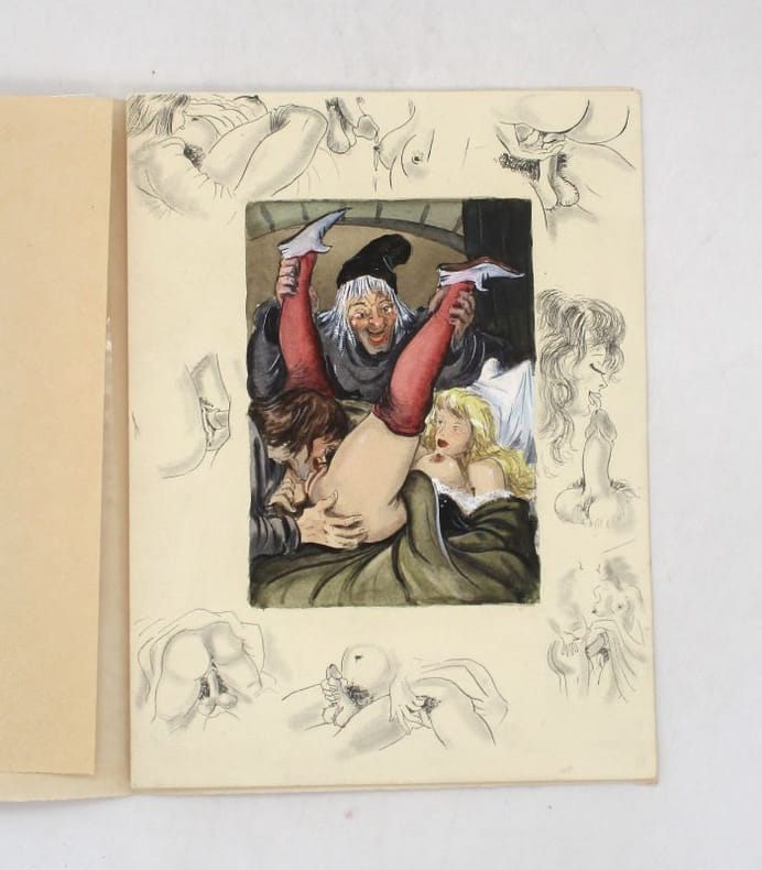 Paris. Eryx. 1956. Petit in-4 (150 x 200mm) en feuilles sous couverture à rabats imprimée en rouge avec étui et emboîtage de feutrine verte, 152, (1) pages, 12 illustrations couleurs hors texte de Gradassi. Un des 195 sur grand vélin d'Arches comprenant une suite en noir avec remarques. Notre exemplaire est enrichi de 2 suites de 4 illustrations hors commerce avec remarques, une en noir et une en couleurs qui ne figurent pas dans l'ouvrage. Etui et emboîtage un peu défraîchis sinon excellent état.