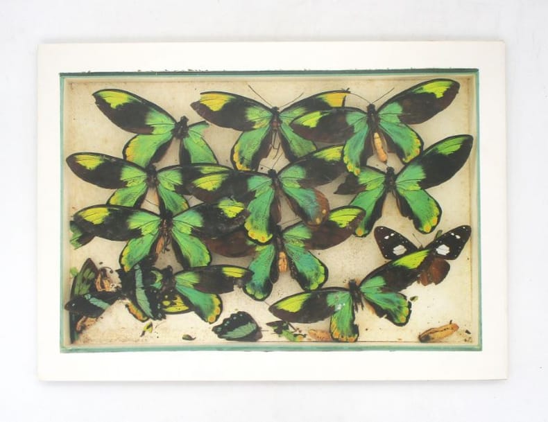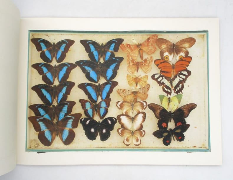 slnd, Circa 1880. 1880 1 vol in-8° oblong ( 190 x 265 mm) de [50] ff de papier bleuté montés sur onglets dont de 37 garnis de 122 découpes de papier de dimention variée portant un papillon composé à partir des ailes, peint à l'aquarelle et gommé. Pleine percaline rouge d'époque, dos muet, encadrement à froid sur les plats (décoloration et défauts d'usage.)